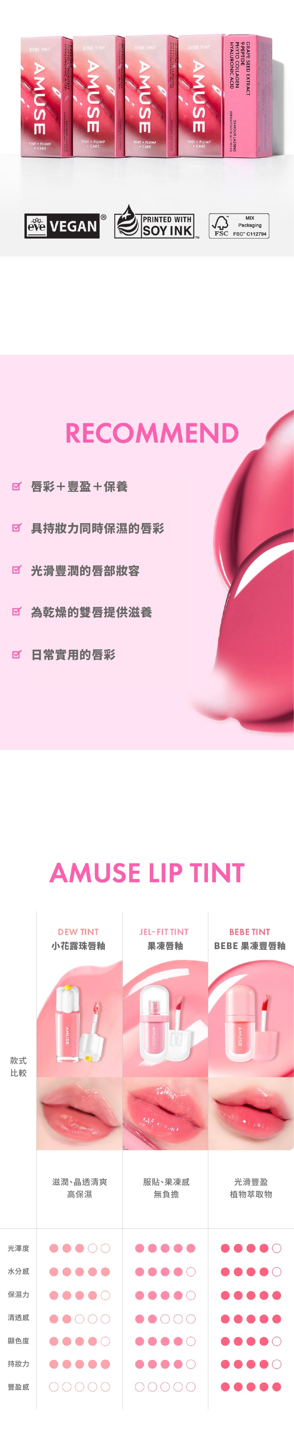 ・2024 AMUSE 新款唇釉!通過 Vegan 認證的純素彩妝品,溫和不刺激,使用沒負擔!
