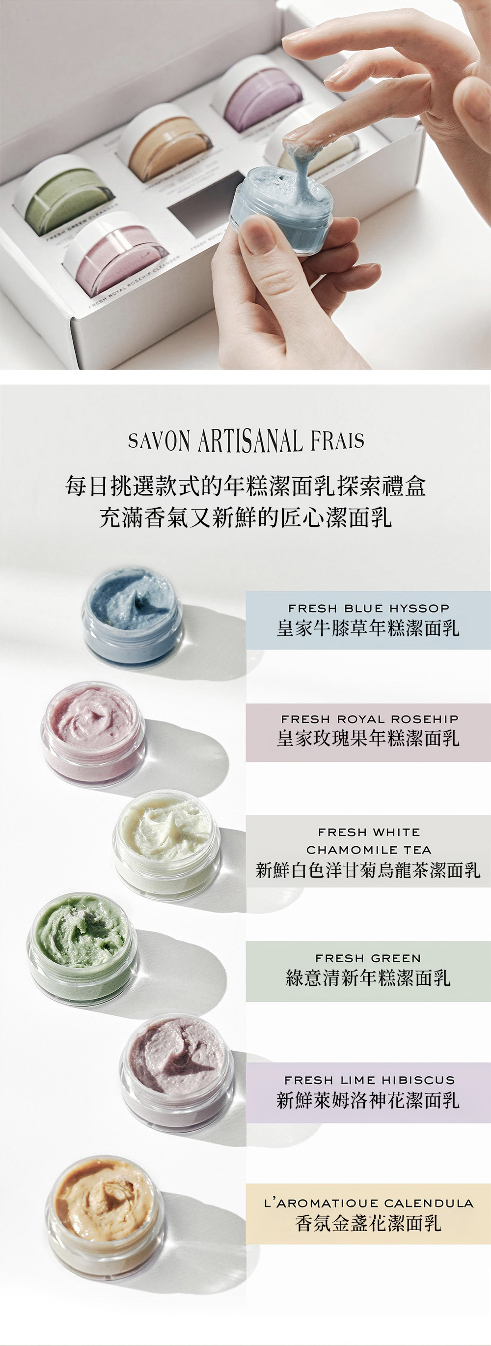 年糕潔面乳 15g x 6:綠意清新 / 香氛金盞花 / 萊姆洛神花/ 洋甘菊烏龍茶 / 皇家牛膝草 / 皇家玫瑰果