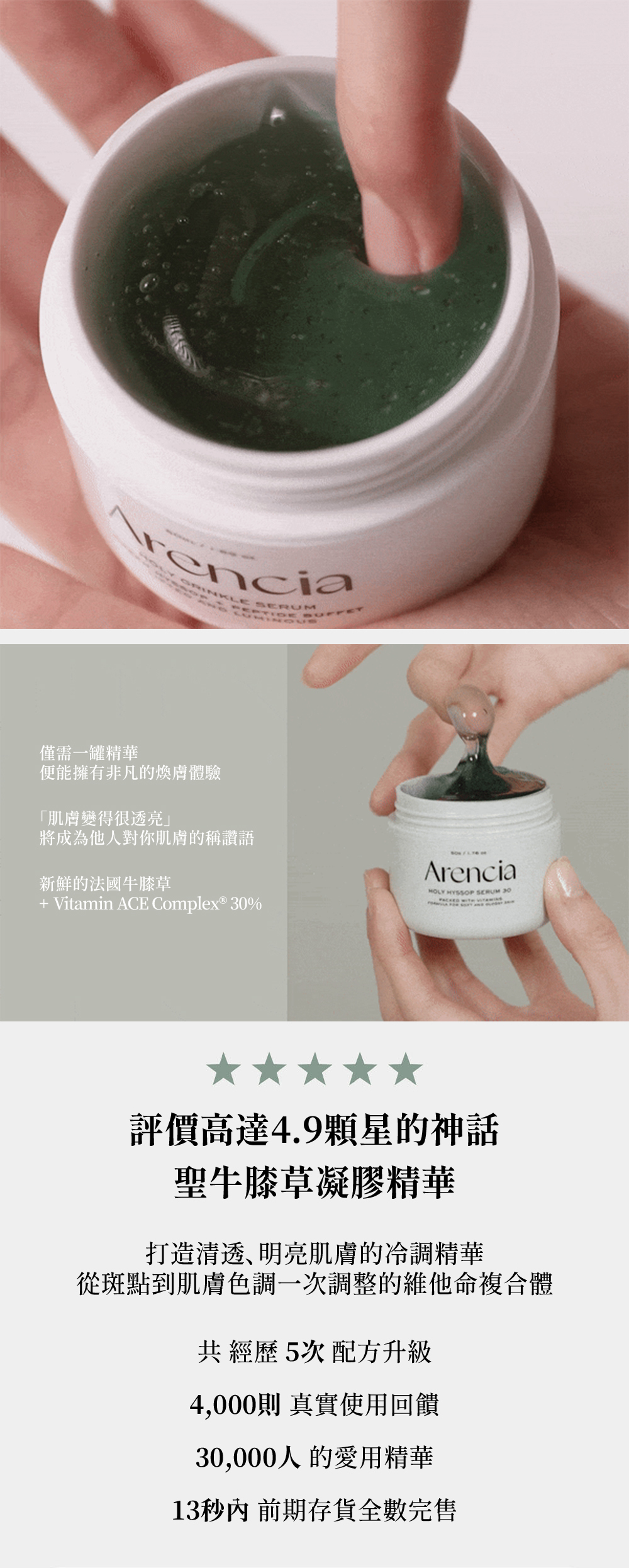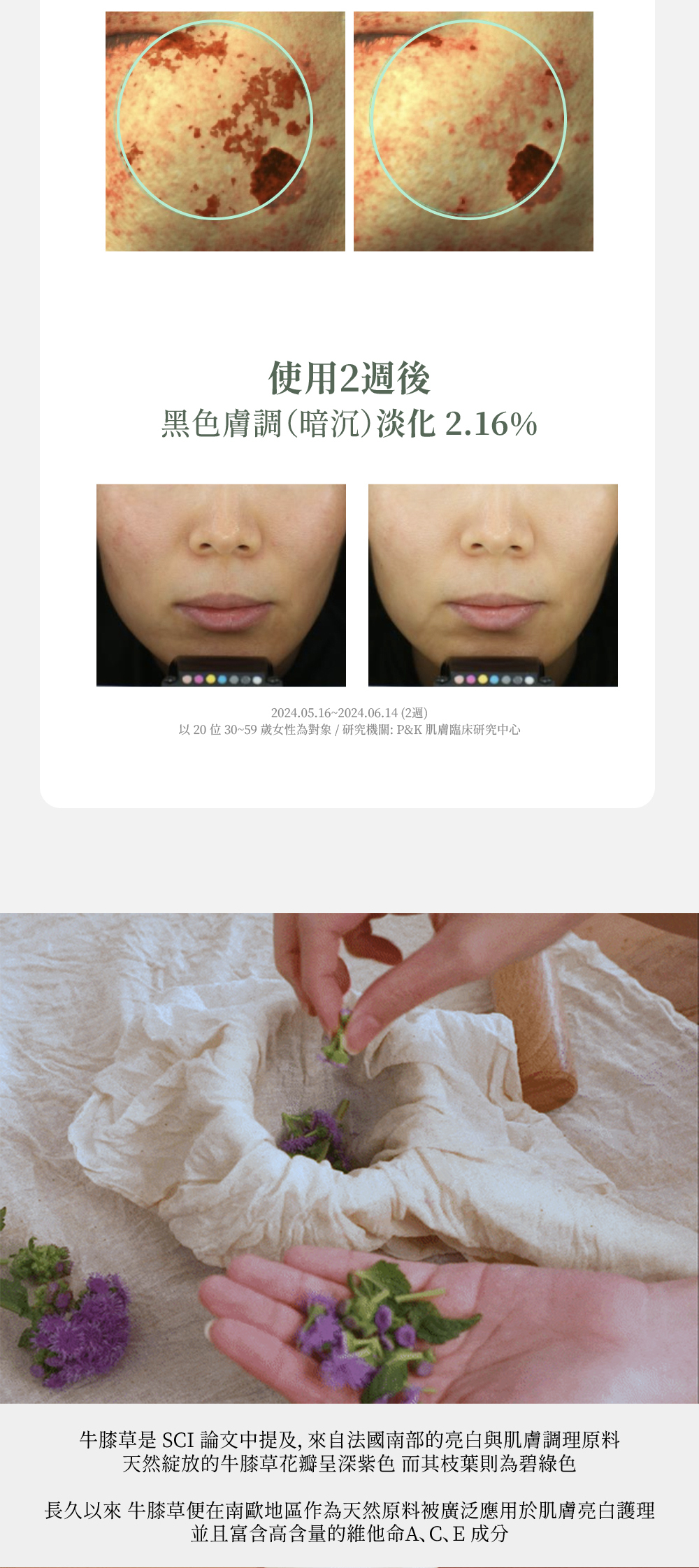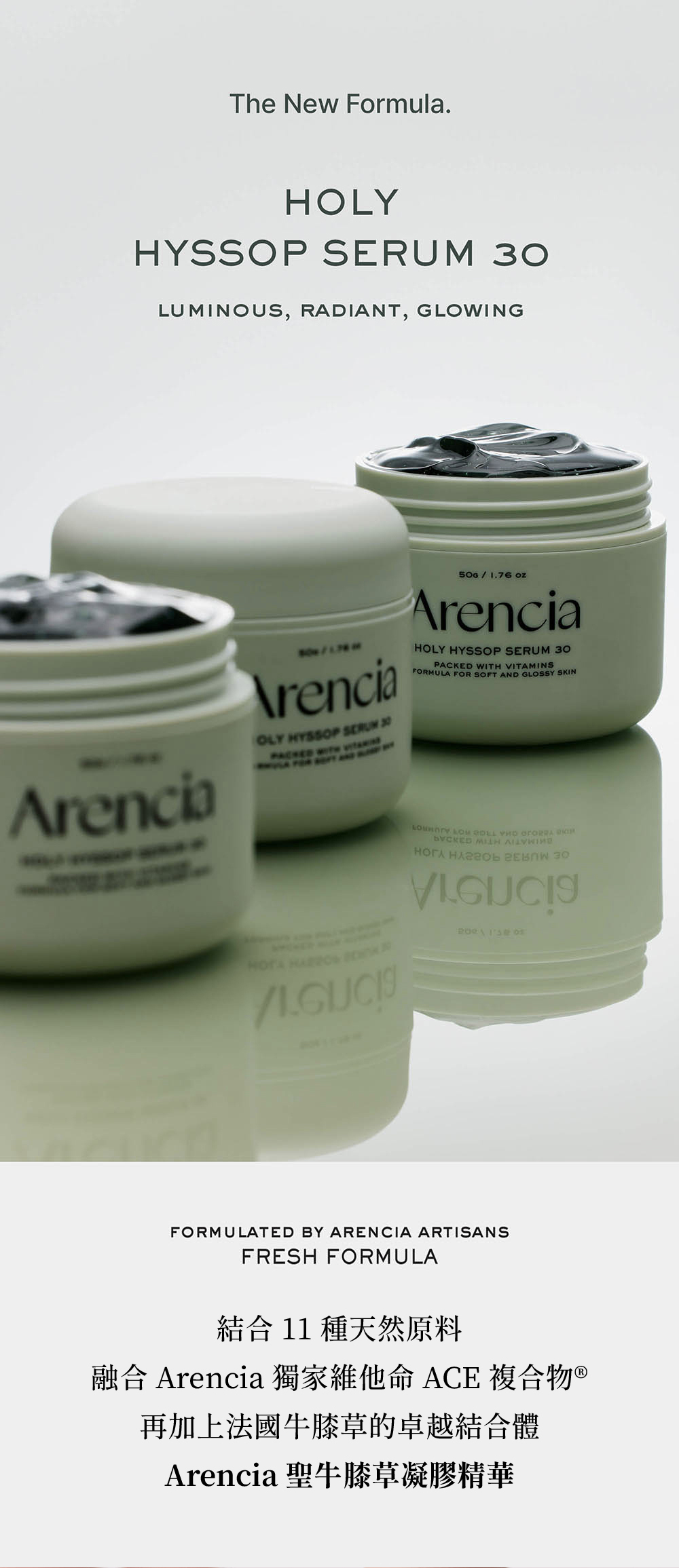 以法國牛膝草萃取為基底成分,含有維他命 A、C、E 打造明亮如琉璃般光滑的肌膚。