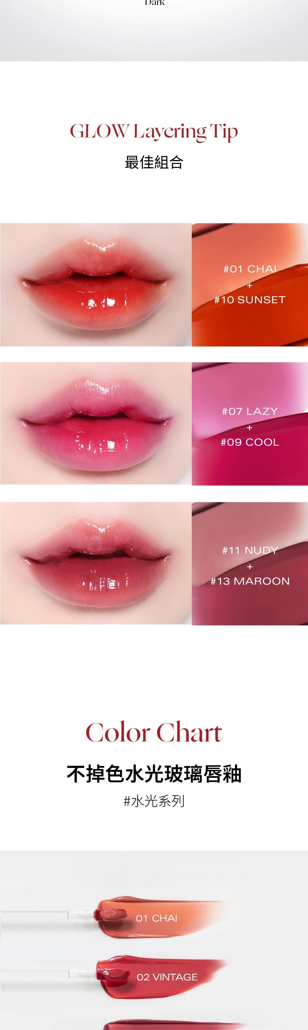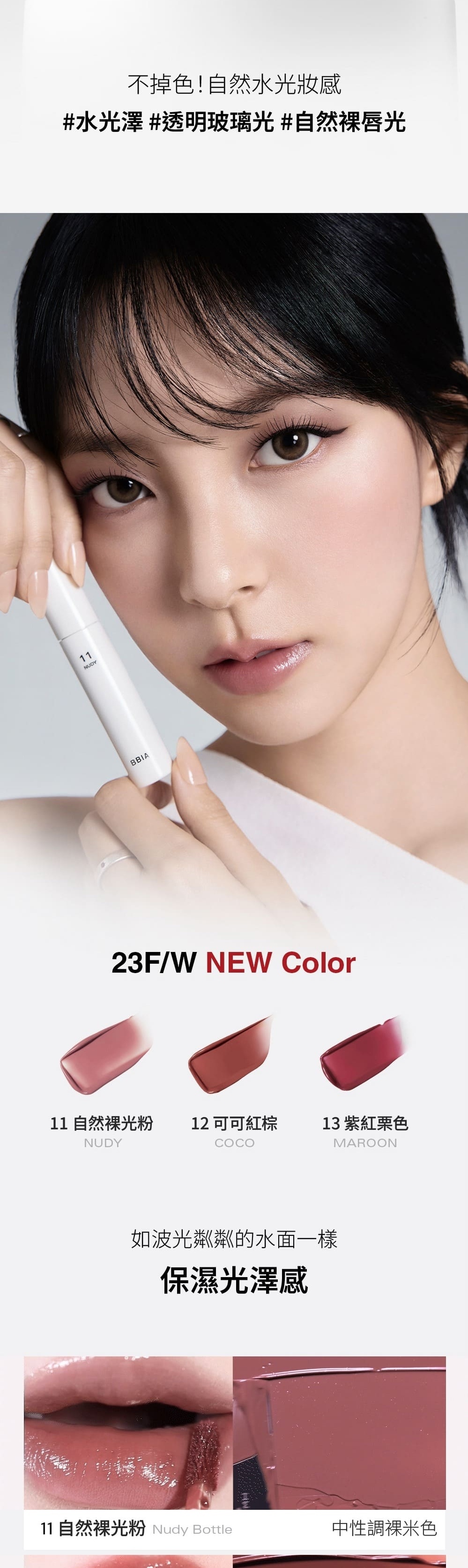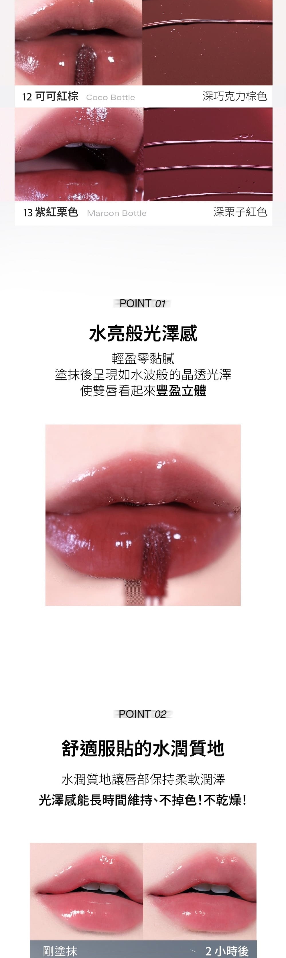 ・輕盈服貼的玻璃唇妝效果,讓雙唇時刻閃耀水潤光澤