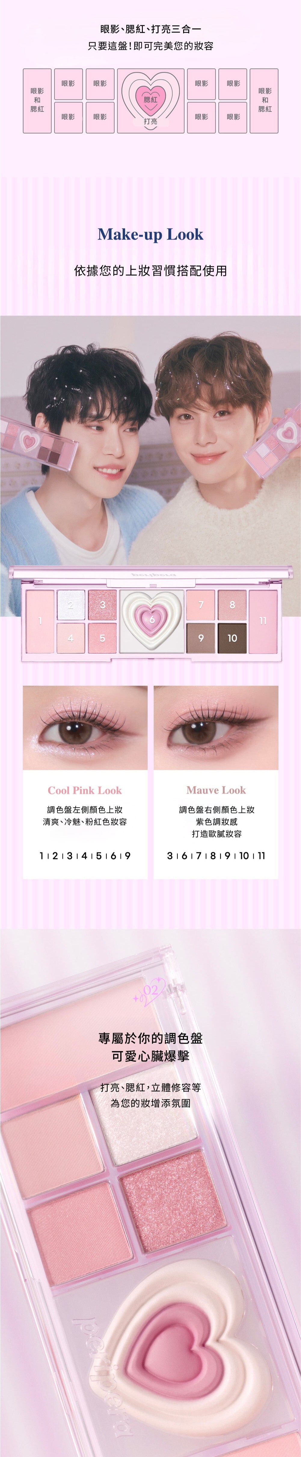 ・可以做為眼影、腮紅,修容、打亮的多功能盤,一盤直接搞定全妝